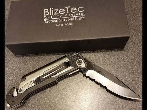 Here is my product review of this Blize Tec tactical Survival knife. Comes with a light, seat belt cutter, glass breaker, fire starter rod,